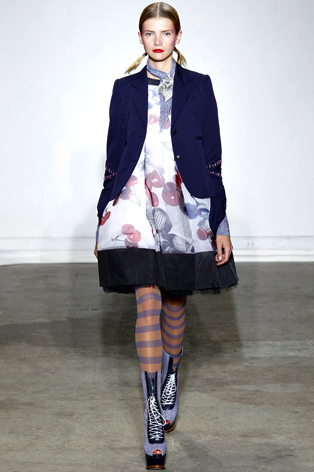 In this collection, I love the innovative use of prints, the striped hosiery and the platforms. Delicious.